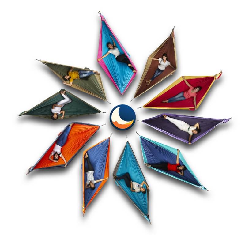 Besonders hervorzuheben: Kompakt und trotzdem unglaublich komfortabel; feinste Fallschirmseide; OEKO-TEX®-zertifizierte, handgemachte Qualität; intuitiver Aufbau ohne Knoten; praktische Seitentasche; inkl. Moonbag und S-Haken; faire Produktion.