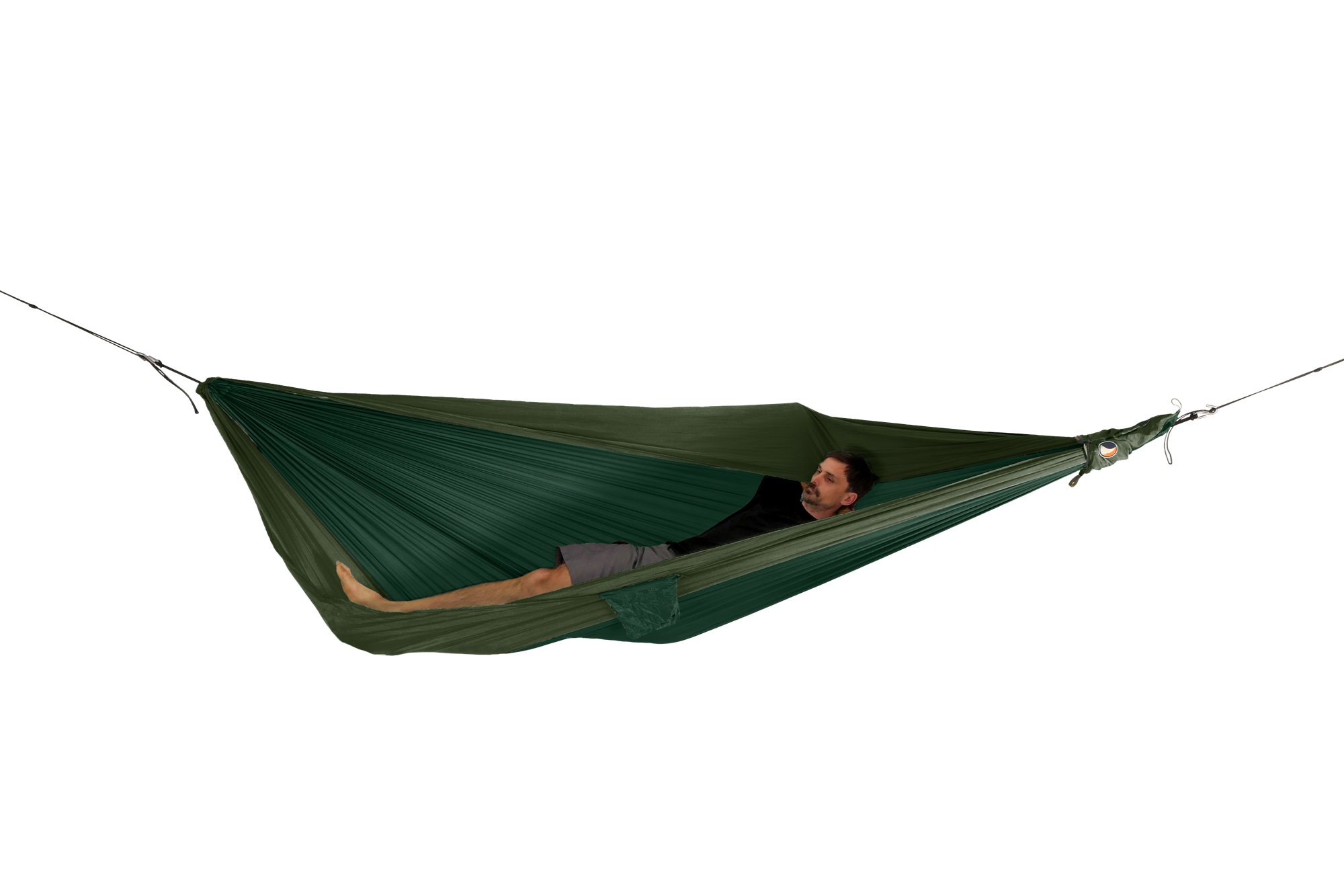 Besonders hervorzuheben: Multitalent & Leichtgewicht; OEKO-TEX®-zertifizierte, handgemachte Qualität; Dreifach-Nähte für extra Haltbarkeit; Aufbau in unter 1 Minute ohne Knoten; integrierte Seitentasche; inkl. Moonbag und S-Haken; faire Produktion.