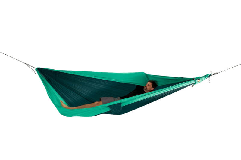 Besonders hervorzuheben: Multitalent & Leichtgewicht; OEKO-TEX®-zertifizierte, handgemachte Qualität; Dreifach-Nähte für extra Haltbarkeit; Aufbau in unter 1 Minute ohne Knoten; integrierte Seitentasche; inkl. Moonbag und S-Haken; faire Produktion.