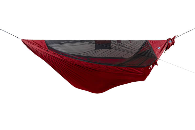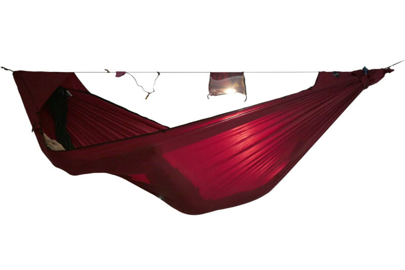 Befestigung: Inkl. 2 x 6kN Karabiner. Integrierte Ridgeline als flexibler Abstandshalter für ideale Liegeposition. Externe Schlaufen zum Fixieren von Underquilt oder zusätzlicher Ausrüstung. Zusätzliche Abspannpunkte mit elastischen Leinen (verstaubar in Dreieckstaschen).